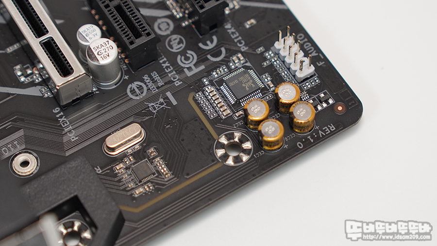 메인보드 상/하단에 +12V, +5V 헤더, 중앙에 +12V 헤더를 지원하고 있어 LED 튜닝 케이스 조립 시 활용도가 좋은 편입니다.