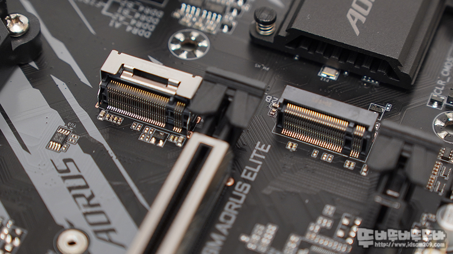 M.2_1 슬롯의 경우 Pro 급에서 볼 수 있는 히트싱크 소켓이 추가된 형태지만 Elite 모델에는 기본 히트싱크를 사용할 수 없는 구조니 참고하시고요.