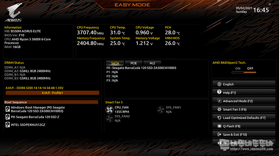 ▷ M/B : GIGABYTE B550M Aorus Elite 메인보드