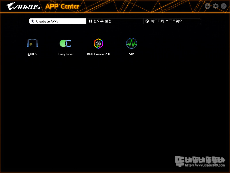 GIGABYTE에서는 APP Center를 통해 RGB Funsion 2.0, SIV, Easy Tune 튜닝 앱 사용과 시스템 관련 소프트웨어 업데이트 지원을 받을 수 있는데요.