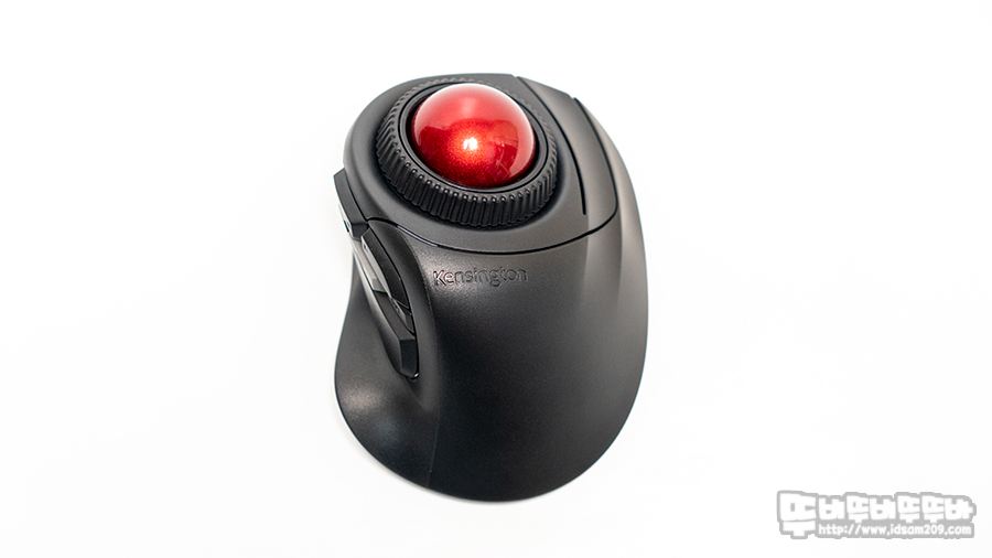 켄싱턴 오르빗 퓨전 무선 트랙볼 마우스 상단 전체를 보면 일반적인 마우스 느낌을 주는데요.