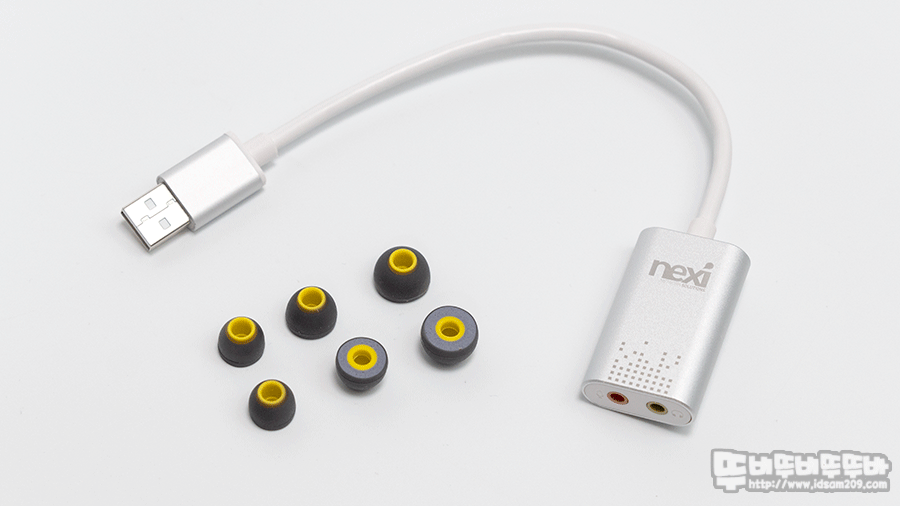 이번 리뷰에 활용되는 추가 아이템인 보급형 USB 사운드카드와 하이브리드 이어 팁입니다.