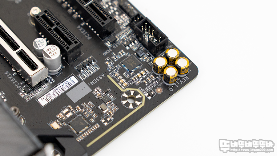 메인보드 상/하단에 +12V, +5V 헤더, 중앙에 +12V 헤더를 지원하고 있어 LED 튜닝 케이스 조립 시 활용도가 좋은 편입니다.