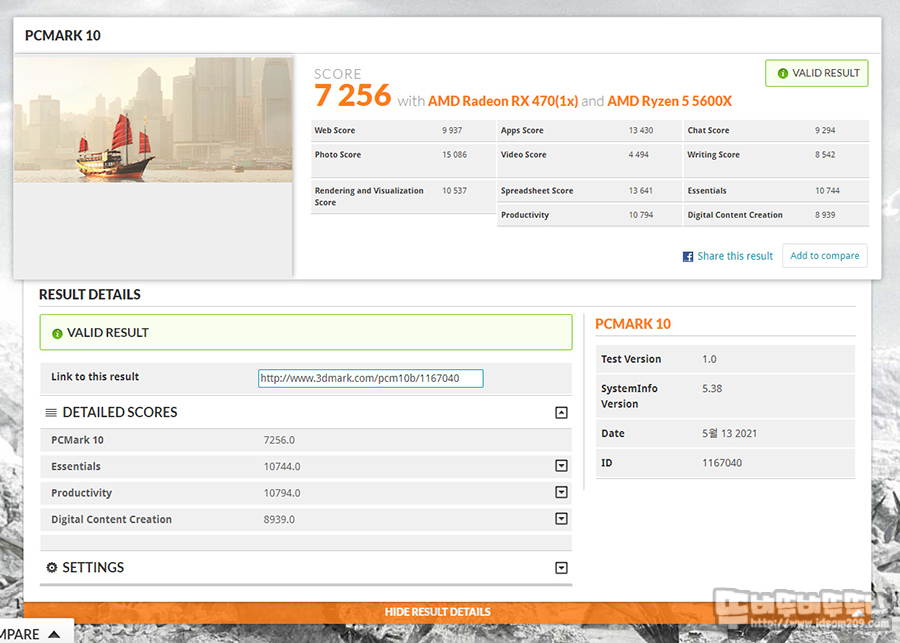 PC MARK 10 토털 스코어 7256점, Essentials 10,744점, Productivity 10,794점, Digital content Creation 8,939점의 성능을 보여주었습니다.