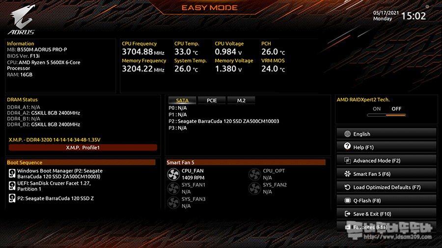 ▷ M/B : GIGABYTE B550M Aorus Elite 메인보드