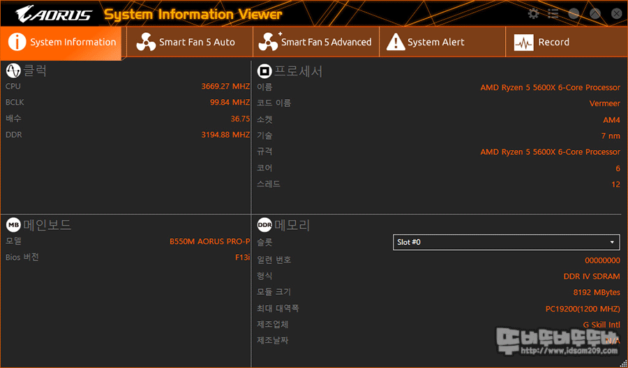 GIGABYTE B550M AORUS PRO-P 메인보드로 구성한 테스트 시스템은 다음과 같습니다.