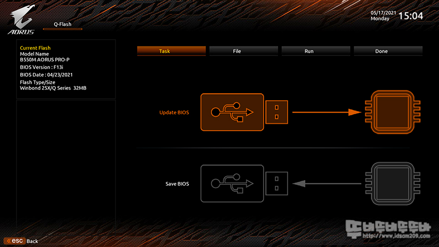 GIGABYTE B550M AORUS PRO-P 메인보드의 경우 C-MOS를 통한 Q-Flash 메뉴를 통한 바이오스 업데이트와 후면 I/O 포트에 Q-Flash 버튼을 이용한 바이오스 업데이트가 가능한데요.
