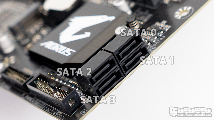 6GB/s 속도를 지원하는 4개의 SATA 포트 커넥터 모습.
