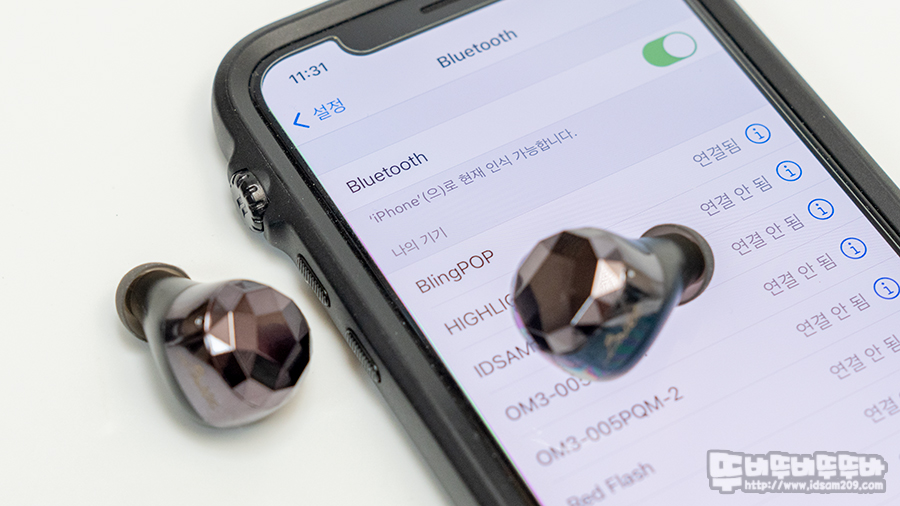 블링블링한 쥬얼리 느낌의 이어버드 모습.