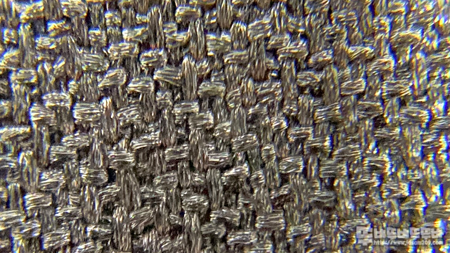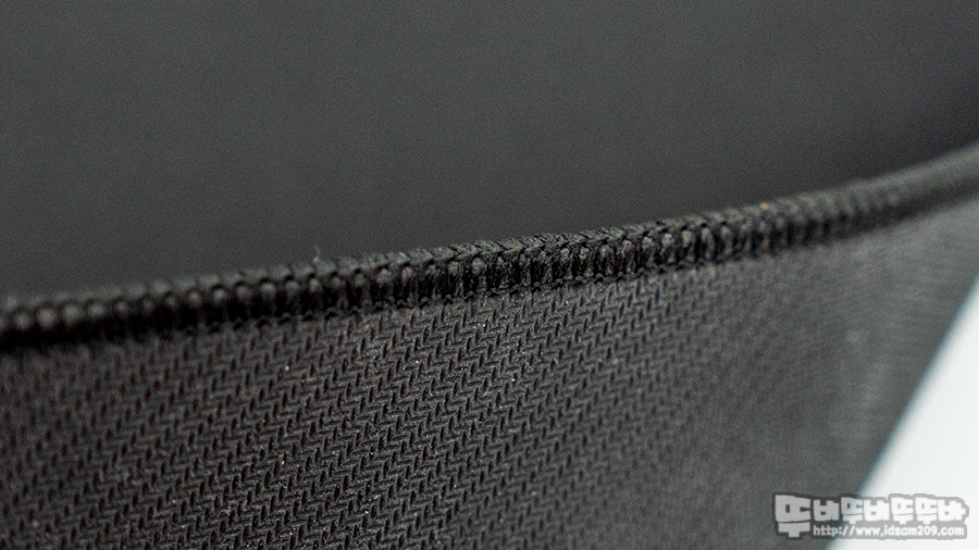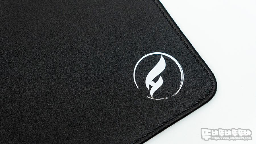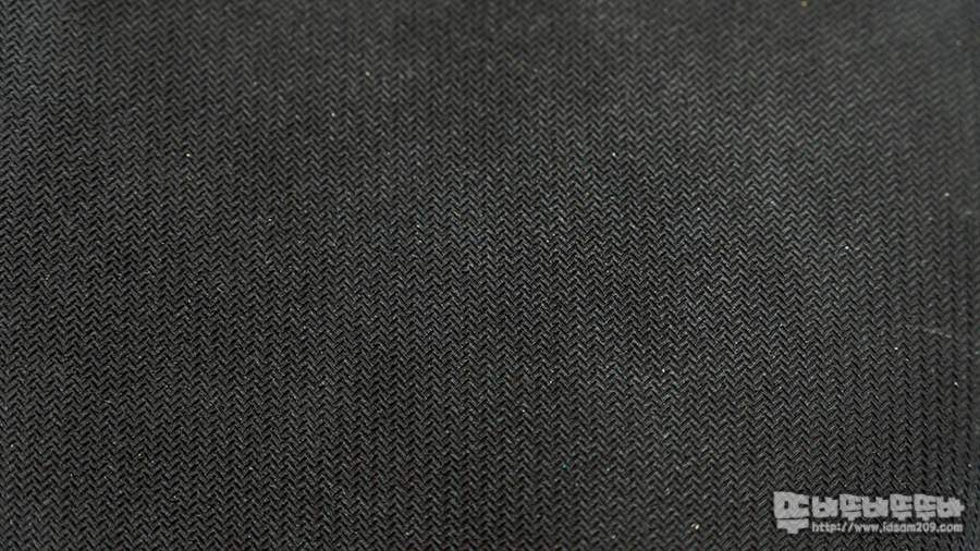 우측 하단의 로고는 실크인쇄가 적용되었으며 패드 표면의 직물 패턴이 균일하진 않지만 촘촘하게 나름 반복되는 패턴을 확인할 수 있으며 직물 패턴의 시각적인 느낌과 실제 손으로 만져지는 느낌은 까실 까실한 느낌을 주기에 표면 상태가 오랫동안 유지될 거 같습니다.