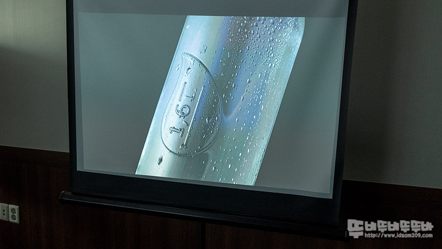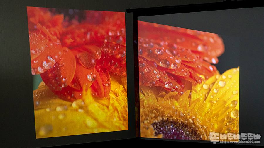 200안시 밝기의 빔프로젝터이기에 스크린의 장점을 살리지 못하는 점이 있습니다.