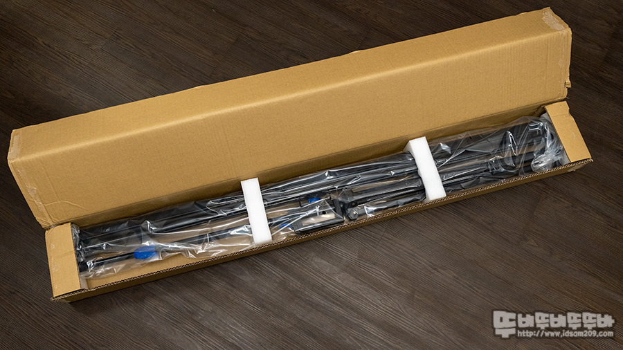 전체적으로 비닐 포장된 상태에 중간중간 스티로폼으로 고정하여 제품 이동 시 충격을 보호하고 있습니다.
