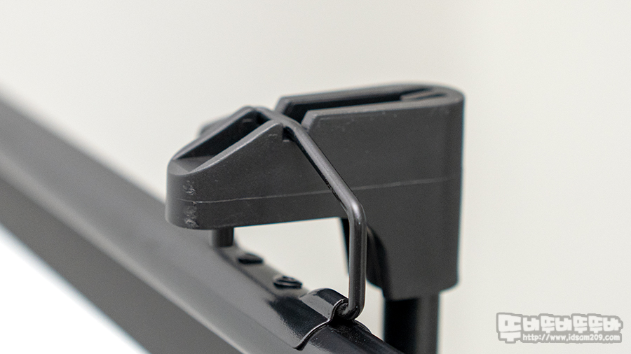 하단부에 손잡이 고정 클립과 상단에 고리를 통해 스크린을 팽팽하게 펼칠 수 있으며 이로 인하여 외부의 약간의 바람에도 스크린이 흔들림 없이 고정되어 원활한 시청이 가능합니다.