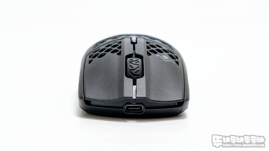 이 부분은 솔직히 이해가 안 되는 게 보통 타공 디자인의 경우 내부에 쌓이는 먼지를 최소 하기 위해 무언가를 고안하는 게 보통인데 AEROX 3 무선 마우스는 그와 반대로 화분 물받이같이 먼지가 쌓일 수 있는 구조로 되어있네요.