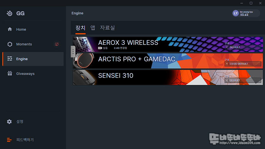 이번에 변경된 steelseries GG 버전 모습입니다.
