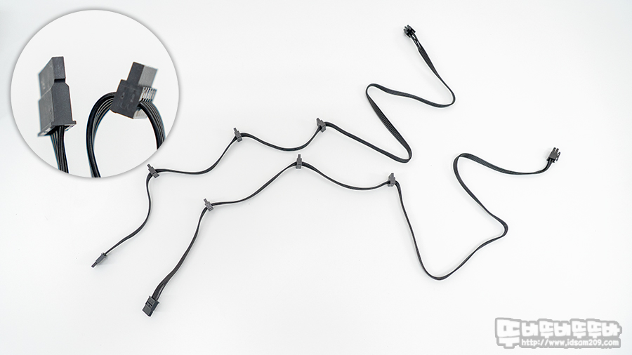 그래픽카드 전원 PCI-E 3개 구성 (길이 600mm + 150mm), 케이블당 6+2핀 커넥터 2개 구성으로 총 6개 커넥터 지원