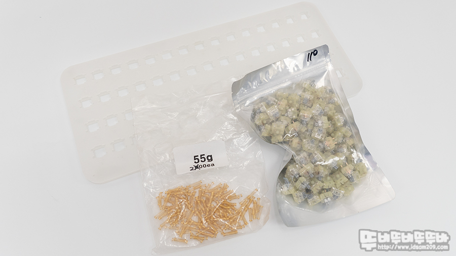 LED 백라이트 효과 때문에 아주 오래전에 커뮤니티에서 공제로 구입했던 체리 MX 은축 RGB 스위치, 55g 골드 스프링을 사용할 예정입니다.