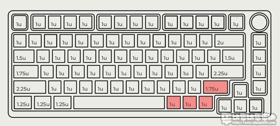 1u는 가로세로가 동일한 키캡을 가르기며 이를 Unit으로 표현하는데요. 가로로 늘어나는 길이에 따라 1.5u, 1.25u, 1.75u, 2.25u 등으로 구분하고 있으니 참고하시기 바랍니다.