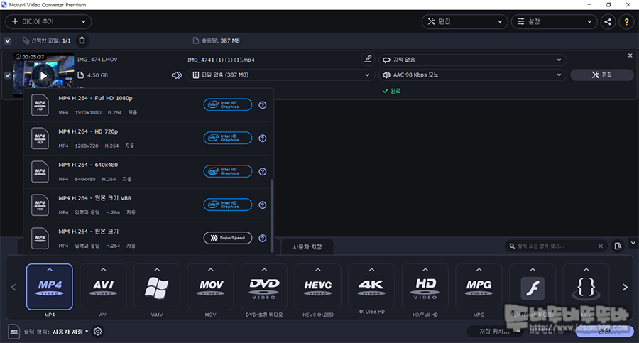 무료프로그램을 사용해보세요. Movavi Video Converter 다운로드 링크 : https://www.movavi.com/kr/videoconverter/