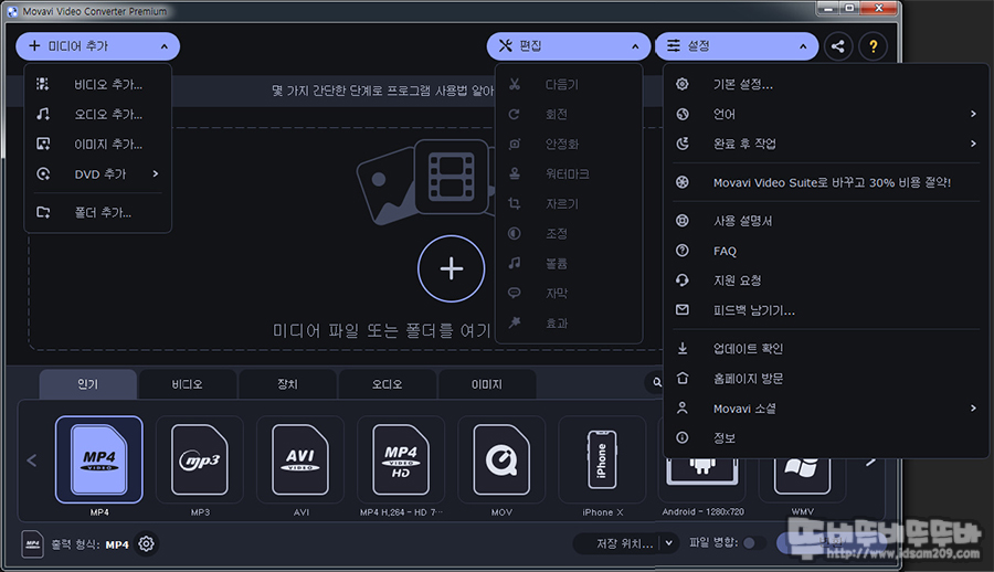 지금까지 기본적인 메뉴 구성을 살펴봤으니 본격적인 Movavi Video Converter를 사용하면서 느꼈던 몇 가지 강점을 알아보겠습니다.