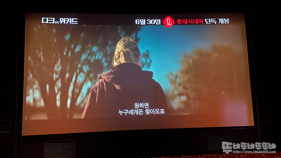 용산 전자상가 전자랜드 내에 위치한 롯데시네마 용산 4관은 222명을 수용하는 나름 규모가 있는 상관으로 의자의 앞뒤 좌석이 꽉 끼지 않는 편안하 착석이 가능한 간격으로 배치되어있습니다.