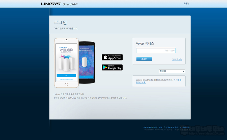 링크시스 앱을 이용한 설정도 가능한 제품이기에 초기 메뉴에서는 IOS 또는 안드로이드 앱스토어로 연결해주는 QR코드를 제공하고 있으니 스마트폰 앱으로 설치 시 참고하시고요.