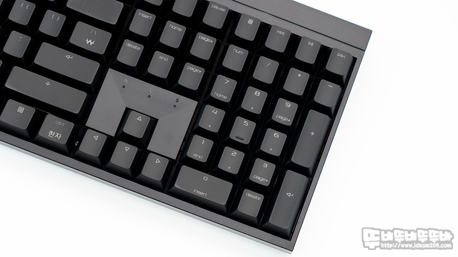 방향키 위에는 Num Lock, Caps Lock, Scroll Lock 키 사용을 알려주는 LED 인디케이터가 위치를 확인할 수 있습니다.