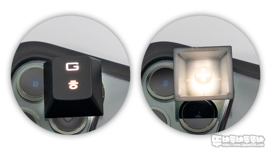 ABS 코팅 키캡의 광량 투과를 테스트 모습.