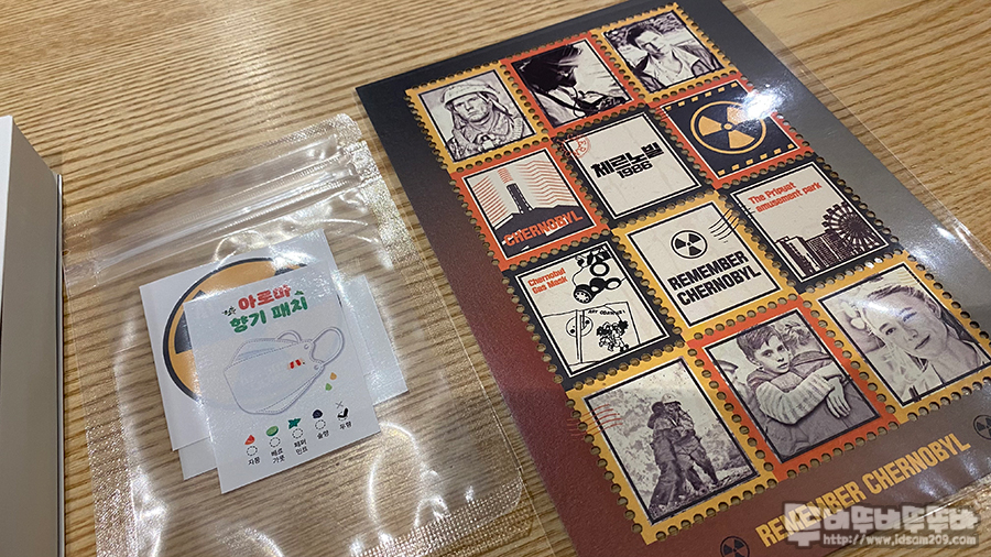 추가 현장 이벤트 참여로 받은 체르노빌 영화 우표? 그리고 마스크 향기 패치.