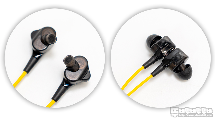 듀얼 6mm 다이나믹 드라이버와 Balance Armature (밸런스 아마추어)가 사용된 이어버드 몰딩 바깥쪽에는 R, L을 구분하는 각인을 확인할 수 있습니다.