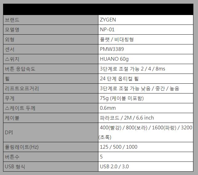 ZYGEN NP-01은 절개형 버튼 구조로 후아노 60g 스위치를 메인으로 사용하고 있어 버튼 중간 부분과 끝부분에서 연속 클릭 시 손가락 관절에 부담 없는 편안함을 줍니다.