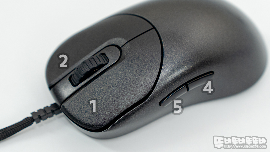 마우스의 기본인 그립감과 가징 핵심적인 기능만 내장한 하드웨어 세팅 기능은 복잡하지 않은 심플함을 주지만, 고정된 DPI는 모니터 해상도에 따라 불편함이 있을 거 같기도 합니다.