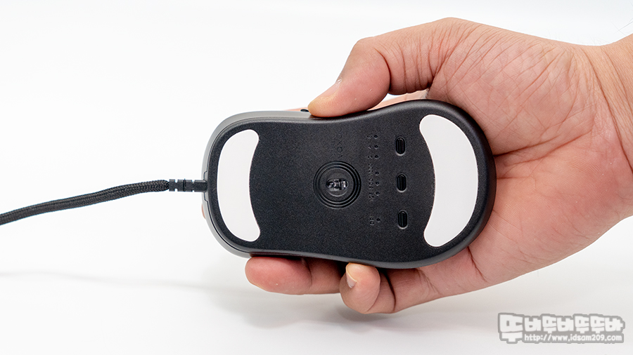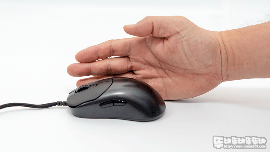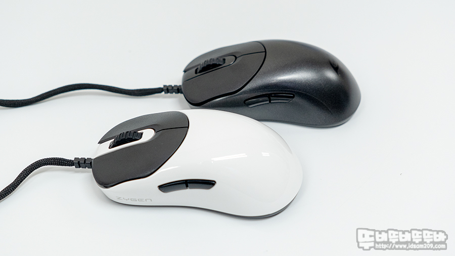 벤큐 조위기어의 마우스를 사용하면 하우징 끝부분이 밑으로 쳐지는 타입으로 손바닥 끝부분이 마우스 끝부분에 올려지는 형태로 꽉 잡히는 느낌이 없지만, ZYGEN NP-01의 경우 끝부분이 두리뭉실하게 말리는 타입이라 마우스 그립 시 꽉 잡히는 느낌을 주는 편입니다.