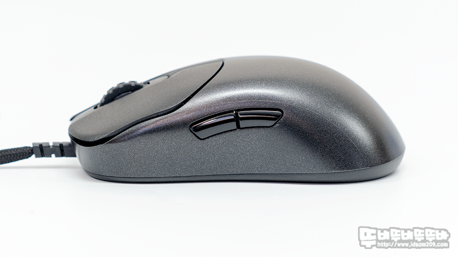 버튼 부와 마우스 하우징 상단은 대칭형 / 사이드 부분이 비대형으로 디자인으로 디자인된 세미 비대칭으로 기존에 밋밋했던 대칭형 마우스의 그립감에 볼륨을 주어 은근히 편안한 느낌을 주더라고요.