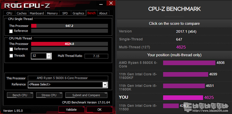 XMP와 PBO 적용으로 싱글코어 647점, 멀티 코어 4,625점을 보여주고 있습니다.