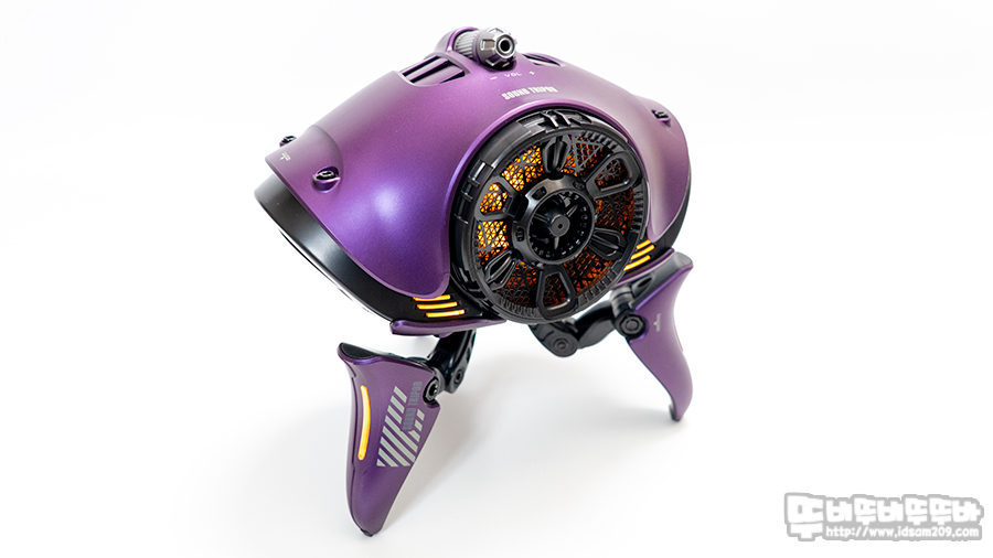 스피커의 강력한 베이스로 인한 진동이 바닥에 전달하는 되는 것을 방지하는 삼각대 구조로 스피커를 공중에 띄워서 안정적인 사운드를 들려주는 제품으로 중저음을 담당하는 미드 베이스 유닛, 고음을 담당하는 트위터 유닛, 양쪽에 베이스를 강화하는 패시브 라디에이터 구조를 사격형이 아닌 우주선 형태로 디자인하여 외형적인 비주얼과 LED 라이팅 사운드 퍼포먼스가 상당이 인상적인 제품입니다.