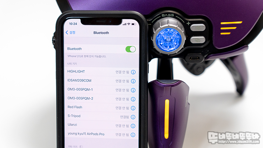 중저음이 강조되는 제품이기에 사운드의 호불호는 있겠지만 스피커와 멀리 떨어진 공간에서 듣는 블루투스 스피커로는 나름대로 매력이 있고요.