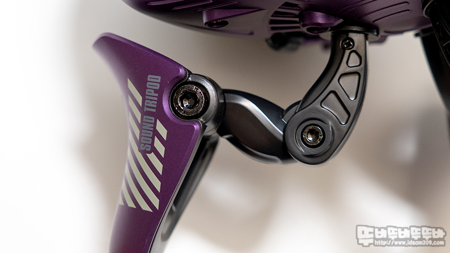 스피커를 공중으로 띄워주는 트라이포드는 고정된 다리와 접이식 다리로 구분되어 공중에 부양된 스피커의 진동을 분산시켜주는 역할을 합니다.