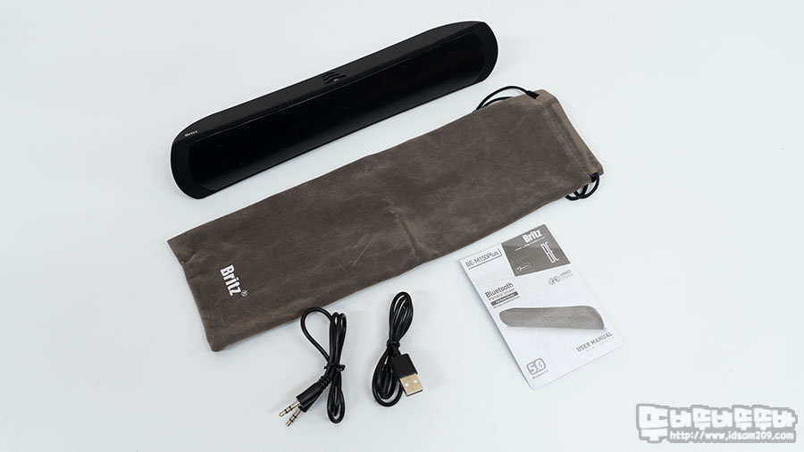 브리츠 BE-M150 PLUS 스테레오 블루투스 스피커는 약 308g 무게와 280 x 60 x 45mm 크기로 휴대성이 좋은 편입니다.
