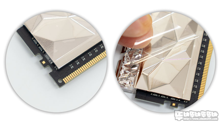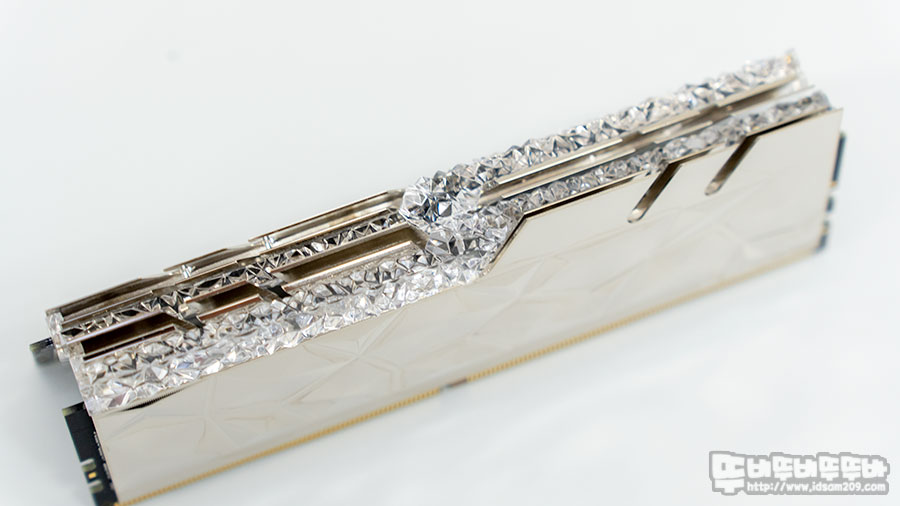이전에 출시한 지스킬의 TRIDENT Z ROYAL C의 매끈한 실버 히트 싱크와 다르게 다이아몬드 패턴의 입체적인 볼륨감과 반짝이는 미러가 적용된 알루미늄 히트 싱크에 메모리 상단에 RGB LED 효과를 극대화하는 크리스털 라이트 바가 적용된 TRIDENT Z ROYAL ELITE는 외적인 고급스러움과 더불어 10층 레이어의 PCB와 엄선된 메모리 사용으로 외적 내적으로 고급스러움으로 무장한 메모리인데요.