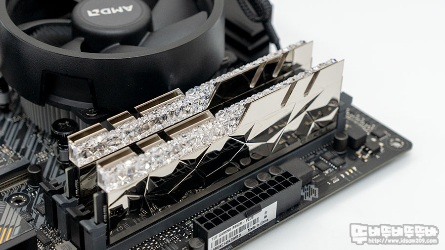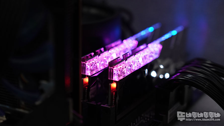 메모리 상단에 크리스탈 느낌의 LED 바 덕분에 고급스러운 블링 블링한 LED 라이팅 감상할 수 있었습니다.