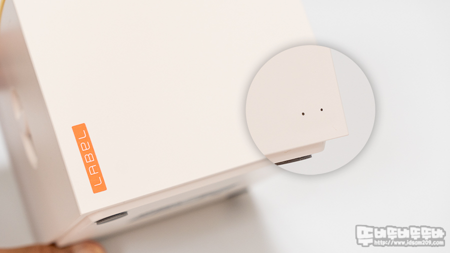이후에는 상단 커버의 용지 배출 홀에 라벨지를 적당히 끼워주고 커버를 닫아주면 준비 끝!!