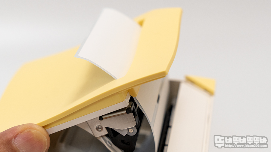 그리고 모서리 부분의 디스펜서 버튼을 눌러 용지를 컷팅해주면 모든 준비가 끝납니다.