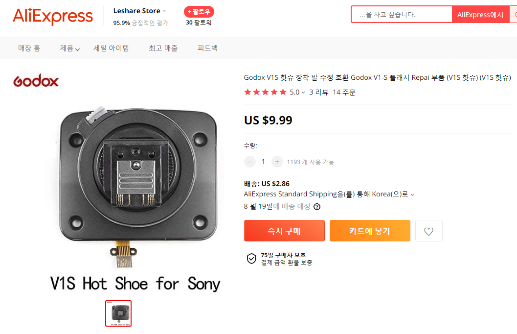 고독스 V1s 플래쉬에 핫슈 부분만 탈부착이 가능하기에 카메라 기종이 변경되는 경우 핫슈 파트만 구입하여 카메라 브랜드에 맞게 사용이 가능하니 참고하시기 바랍니다.