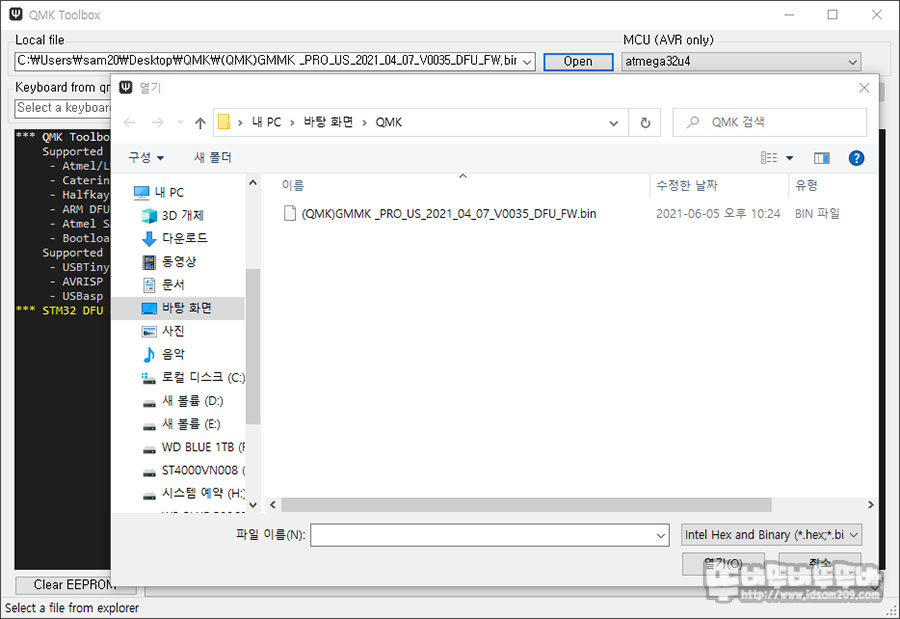 1. 먼저 Glorious Core 키맵 파일인 "(QMK)GMMK _PRO_US_2021_04_07_V0035_DFU_FW.bin"을 다운로드합니다.