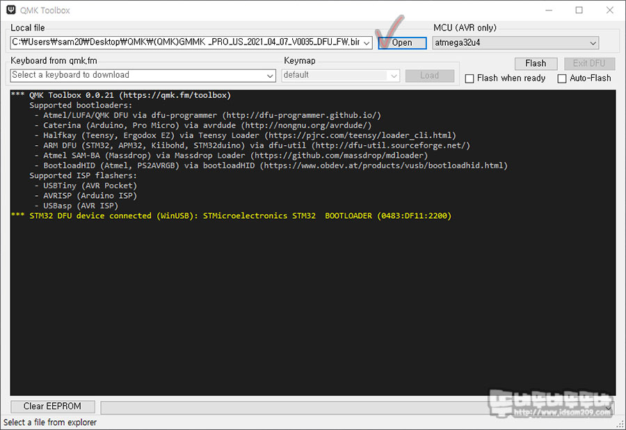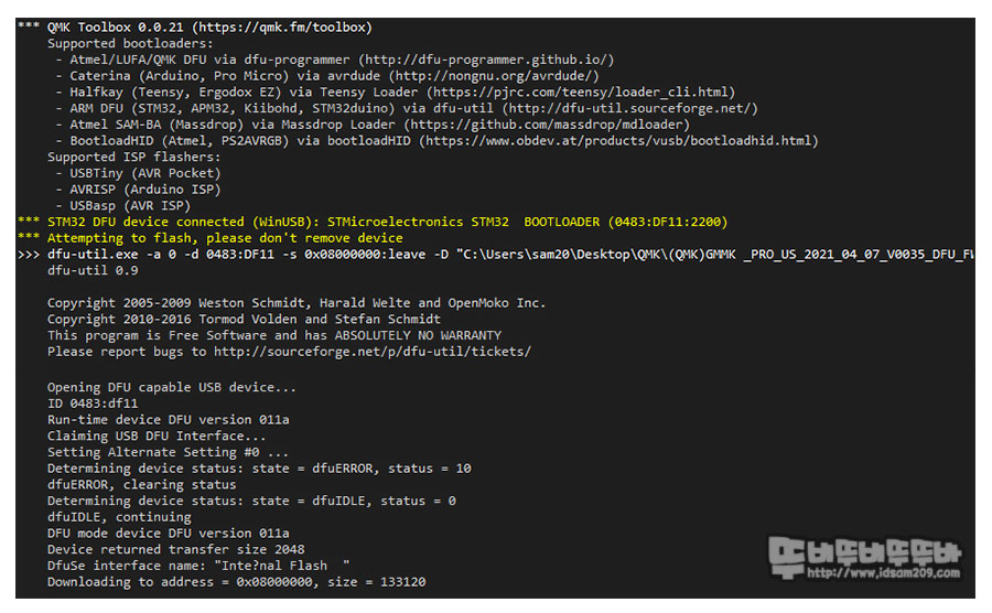 한 가지 참고하셔야 할 부분은 2021년 5월에 1차 수입 제품 100개 물량은 위의 변경된 키캡 파일을 QMK Toolbox를 이용한 펌웨어가 가능한데요. 전 세계적으로 반도체 수급에 문제가 생기면서 2차 물량부터는 QMK Toolbox 지원 안된다는 이야기를 들은 적이 있는데요.