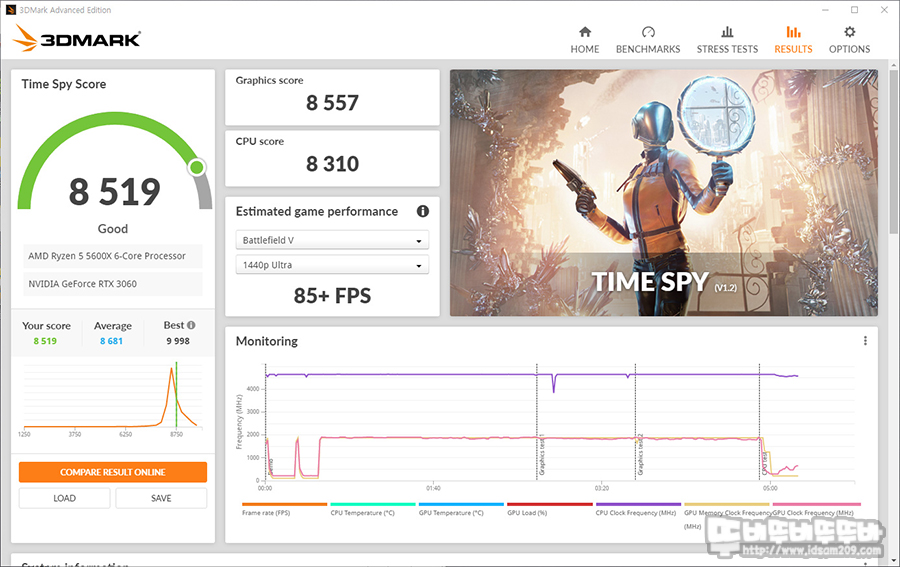 3D Mark 파이어 스트라이크 21,880점, 타임 스파이 8,557점으로 안정적인 성능을 보여주고 있습니다.