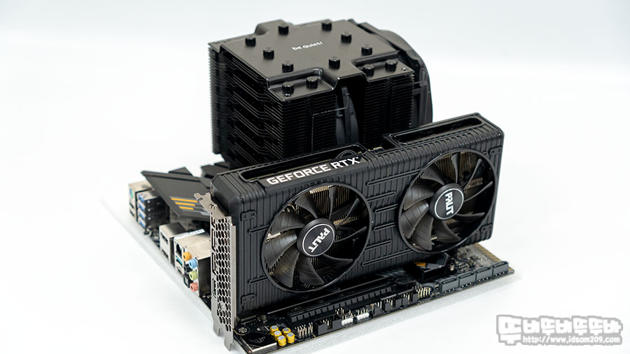 ASUS TUF Gaming B550M-Plus 메인보드의 Micro-ATX의 보드 크기를 감안하면 PALIT 지포스 RTX 3060 Dual D6 12GB는 부담 없는 사이즈로 다양한 시스템에 어울리는 그래픽카드임을 알 수 있습니다.