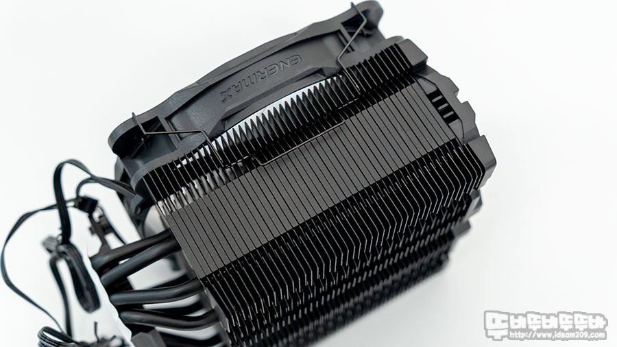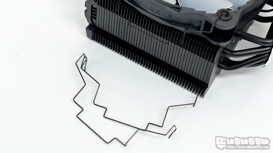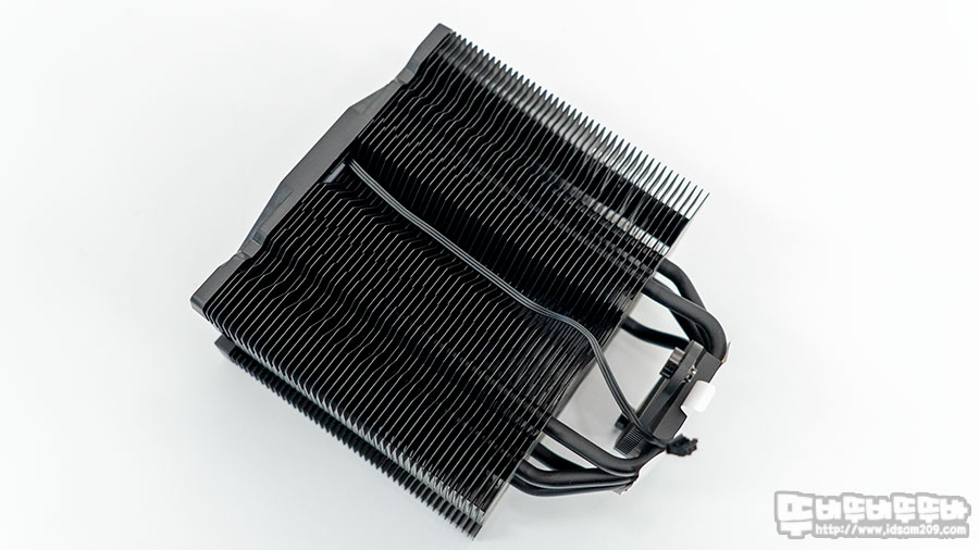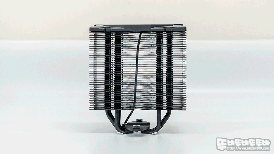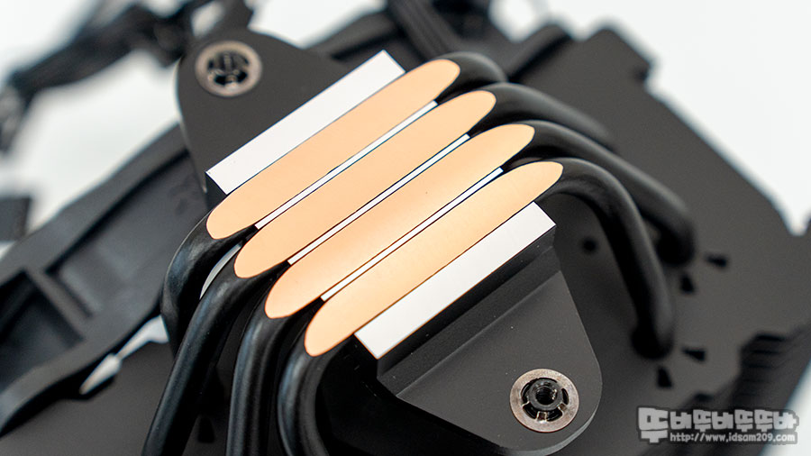 히트파이프를 직접 가공하여 CPU 히트스프레더 표면에 닿아 베이스에 발생한 열을 빠르게 위로 전달해주는 히트 파이프 다이렉트 터치 기술 (Heat Pipe Direct Touch : HDT)이 적용되어 유일하게 블랙 컬러 코팅이 안 된 모습을 보여줍니다.