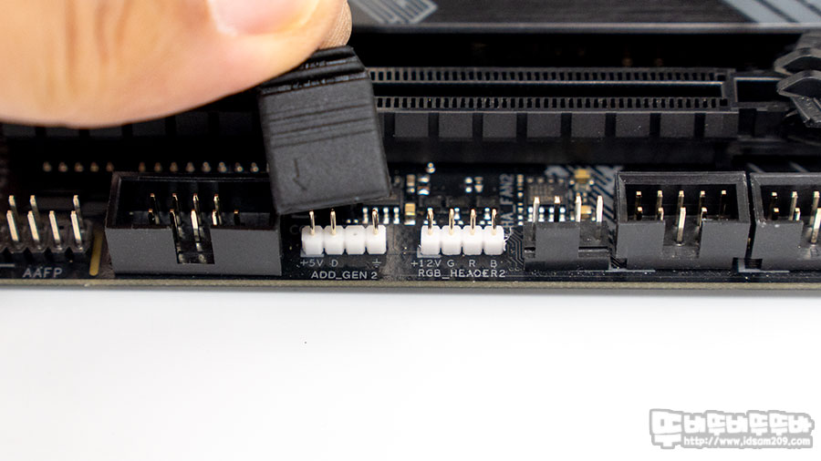 에너맥스 ETS-F40-FS ARGB CPU 쿨러의 상단 캡과 쿨링 팬의 ARGB SYNC를 위해 메인보드에 Addressable RGB 5V 핀 커넥터에 연결해주면 모든 조립이 완료됩니다.